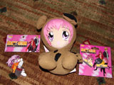- Buying Gravitation pins, a Kumagoro plushie, doujinshi, and Last Exile figures