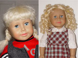 In addition to Molly, I also own Felicity (bought after saving up my own money), and Kimberly (a Just Like You doll as a gift from our grandparents), and Jen owns Samantha, Kirsten (bought herself), and Emily (Christmas gift). We spent many hours over the years playing together with these dolls. In addition to the American Girls, we also always included our dolls Sophie (TCA Group Inc doll) and Katelyn (a renamed Always Sister Mallory) in the games. Since we always played with them and they still sit on our shelves beside the American Girls we can't separate them from the official AG dolls. Our games usually consisted of the girls going to school and they always wore a mish mash of historical and modern clothing. When being displayed I used to keep my Molly and Felicity in their own time appropriate clothes, but I usually don't pay too much attention to that anymore and just dress everyone in modern clothes.