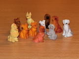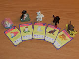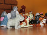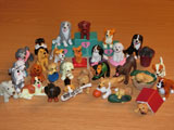Puppy In My Pocket and Kitty In My Pocket were small collectible plastic dogs and cats that were released in the 90's. The toys each came with a card featuring a drawing of them along with some information and a fold up checklist of all the available toys in the line. The packs of animals also came with little pet show stands to play with or display them on and the cats had a nice display case with all their names outside of each of the cubbies. I'm not sure if the puppy set had something similar or not, but if so we only had the cat set. In addition to the individual animals, there were also family sets that featured an animal with their babies in a basket. I also had a few similar dogs from Oriental Trading, but they were a bit smaller than the Puppy In My Pocket dogs.