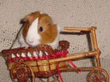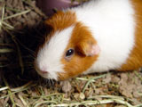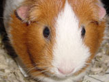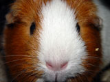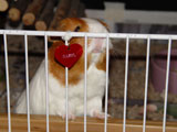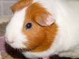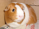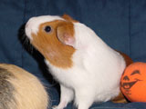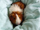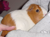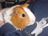 Hazel was always more of a loner than the other guinea pigs because she usually preferred to not be held or handled whereas the others loved the attention. She was a very quiet guinea pig, and she and Muffy were quite the pair to look at because of the vast size difference between the two. When we first got Hazel, our dad started calling her 'rat pig' because she looked so skinny. She was a really unique guinea pig who had her own way of doing things - you never knew quite what to expect with her! One time I set her on the floor and she just took off across the room, she was so fast! It was a surprise because all of our other pigs would just sit there for a minute before starting to wander around on the floor. One other thing that Hazel did that was different was that she would barber Muffy's fur. We liked to call her a hairdresser because she liked to style Muffy's fur, even though we thought her fur looked better before!