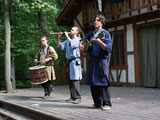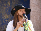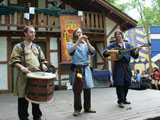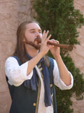 Cercamon is a musical group that played music from or inspired by the Medieval period in Europe. The three members of the band played many unique instruments and performed their songs in a variety of different languages. We saw them at the Renaissance Festival during the 2007 through 2009 seasons. Cercamon consisted of three musicians: Pierre-Alexandre Saint-Yves (lead singer, flutes, hurdy gurdy), Andrew Wells-Oberegger (back-up singer, guitars, bagpipe), and Jean-Phillippe Parent (drums). They were from Montreal and although English was not their first language, their in-between song banter was always so funny. In addition to being great musicians they were also really kind when we talked to them after their shows.