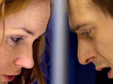 [Rory puts his hand against her's from inside the TARDIS]