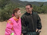 Kimberly: "Hey, Tom! We just got back, I couldn't wait to see you." [they kiss and hug] "How are ya?"