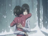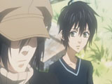 Miharu: "Just take it!" [Yoite throws scarf on floor] "Ah..." [picks up the scarf, wraps it around Yoite's neck, and smiles]